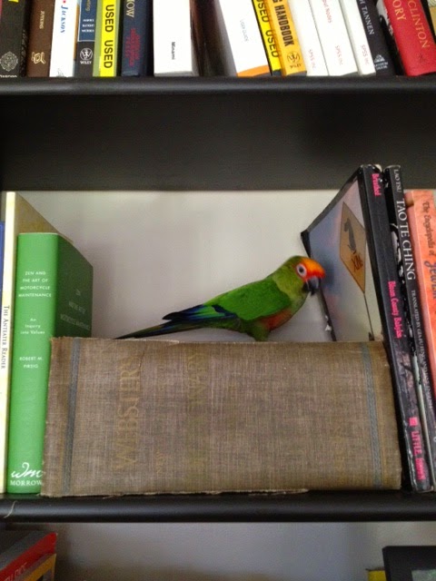 Bird came to us from a friend. Bird flew into her yard one day. Bird is a gold-capped conure. Male and female gold-capped conures look exactly the same. A genetic test, we were told, would be the only way to determine gender. We never bothered.